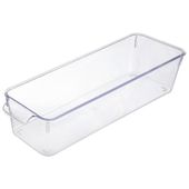 Kuchenny pojemnik do przechowywania produktów spożywczych. Świetnie sprawdzi się jako organizer do lodówki. Dzięki przezroczystej formie można z łatwością zobaczyć zawartość pojemnika. Jest łatwy w czyszczeniu i wygodny w użytkowaniu, dzięki praktycznemu uchwytowi. Pojemnik nie posiada pokrywki. Przydatny w każdym domu.