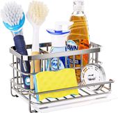 Trzy przegródki tego pojemnika na zlew idealnie nadają się do przechowywania szczotek do naczyń, butelek na płyn do mycia naczyń, gąbek, zatyczek do zlewu itp.