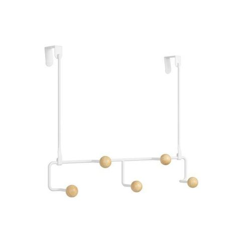 Organizer Estique wykonany został z metalu oraz drewna. Dzięki takiemu połączeniu UMBRA uzyskała niesamowity efekt, który sprawia, że rzeczy zyskują nie tylko dodatkowe miejsce do przechowania, ale również wyglądają estetycznie. Minimalistyczny projekt sprawdzi się w sypialni na torebki, kurtki lub w łazience jako haczyk na ręczniki. Wieszak przeznaczony jest do zamontowania na drzwiach zastępując w ten sposób klasyczny stojący wieszak. Takie rozwiązanie sprawdzi się idealnie w mniejszych wnętrzach, ponieważ pozwoli zaoszczędzić ci sporo miejsca. Wieszak posiada 5 uchwytów, których końcówki wykończone zostały ciekawymi kulkami wykonanymi z drewna. Maksymalna grubość drzwi na których można powiesić organizer to 4cm.