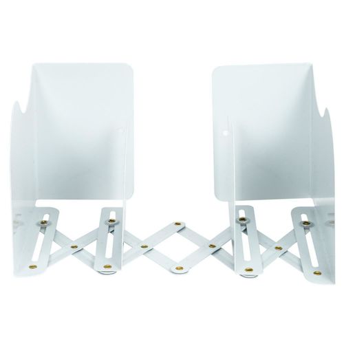 Ten malowany na biało metalowy organizer na książki o regulowanej szerokości jest idealnym dodatkiem do każdej domowej biblioteki lub biura. Posiada dwie boczne ścianki i dwie przegródki, dzięki czemu można łatwo zorganizować i przechowywać książki, segregatory i inne materiały. Regulowana szerokość pozwala na dostosowanie rozmiaru organizera do przestrzeni, którą dysponujesz (10-46cm).