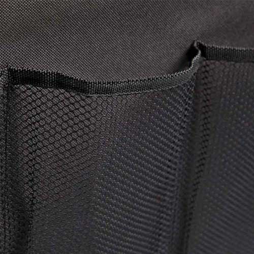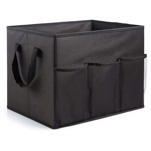Wykonany z wysokiej jakości poliestru, organizer jest zarówno wytrzymały, jak i estetyczny. Minimalistyczny design i czarny kolor sprawia, że produkt ten doskonale wpasowuje się w każde wnętrze samochodu. Organizer posiada jedną dużą komorę oraz trzy dodatkowe kieszonki, co czyni go funkcjonalnym gadżetem do organizacji przestrzeni. Dodatkowo, wyposażony jest w wygodne uchwyty, które ułatwiają przenoszenie, oraz zabezpieczający rzep, który sprawia, że pojemnik nie będzie się przemieszczał podczas jazdy.
