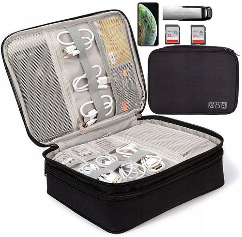 Wprowadź ład i porządek w swoim życiu z Organizerem Torba Podróżna na Kable Ładowarki! Czy zdarzyło Ci się kiedyś spędzić długie minuty na szukaniu ładowarki, kabla USB czy karty pamięci? Nasz solidny, dwuwarstwowy organizer to odpowiedź na Twoje problemy! Teraz wszystkie istotne akcesoria będą na wyciągnięcie ręki, a Ty zaoszczędzisz cenny czas.