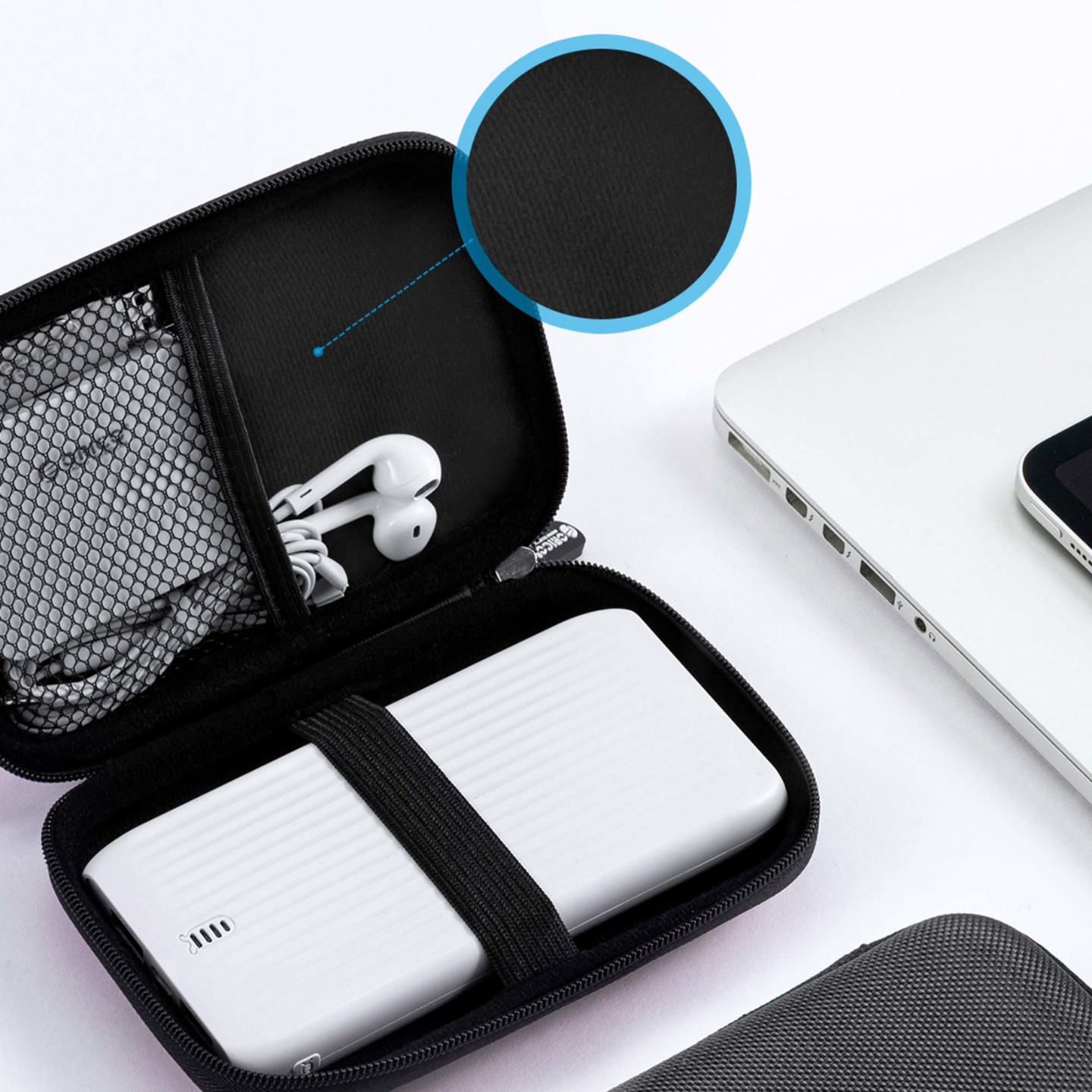 Odporne na kurz i wilgoć etui ochronne typu „skorupa” pozwoli Ci na przechowywanie 2,5-calowego dysku twardego nawet w ekstremalnych warunkach. Etui zawiera praktyczną kieszeń z siatki, w której możesz umieścić kable, słuchawki czy inne drobne akcesoria. Przestrzeń na dysk twardy jest zabezpieczona gumą, która dodatkowo amortyzuje wstrząsy.