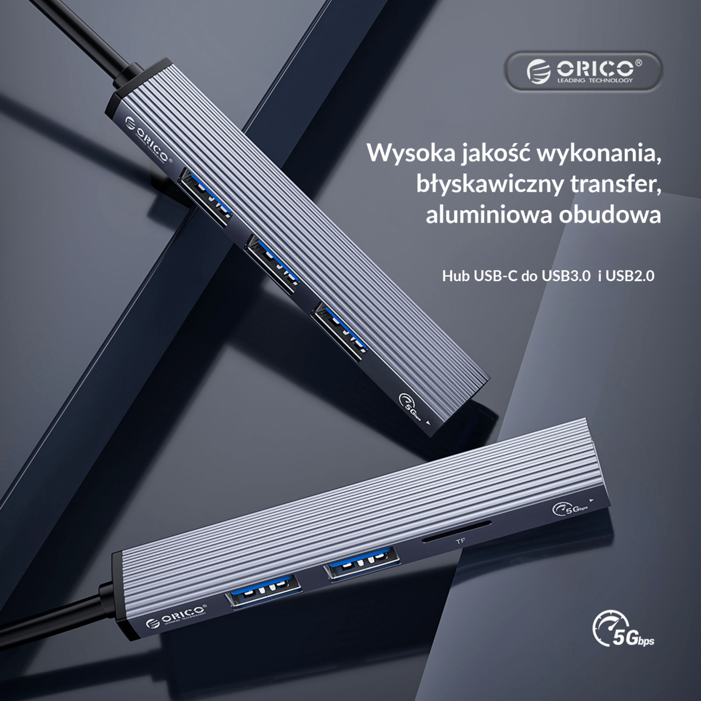 Jeśli potrzebujesz huba z większą liczbą portów, ale bez czytnika kart, w ofercie Orico jest także podobny hub AH-13.