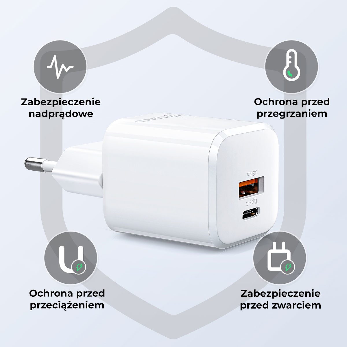 Ładowarka Orico została wyposażona zarówno w gniazdo USB-C, jak i USB-A dlatego podłączysz do niej praktycznie każdy popularny kabel ładowania!