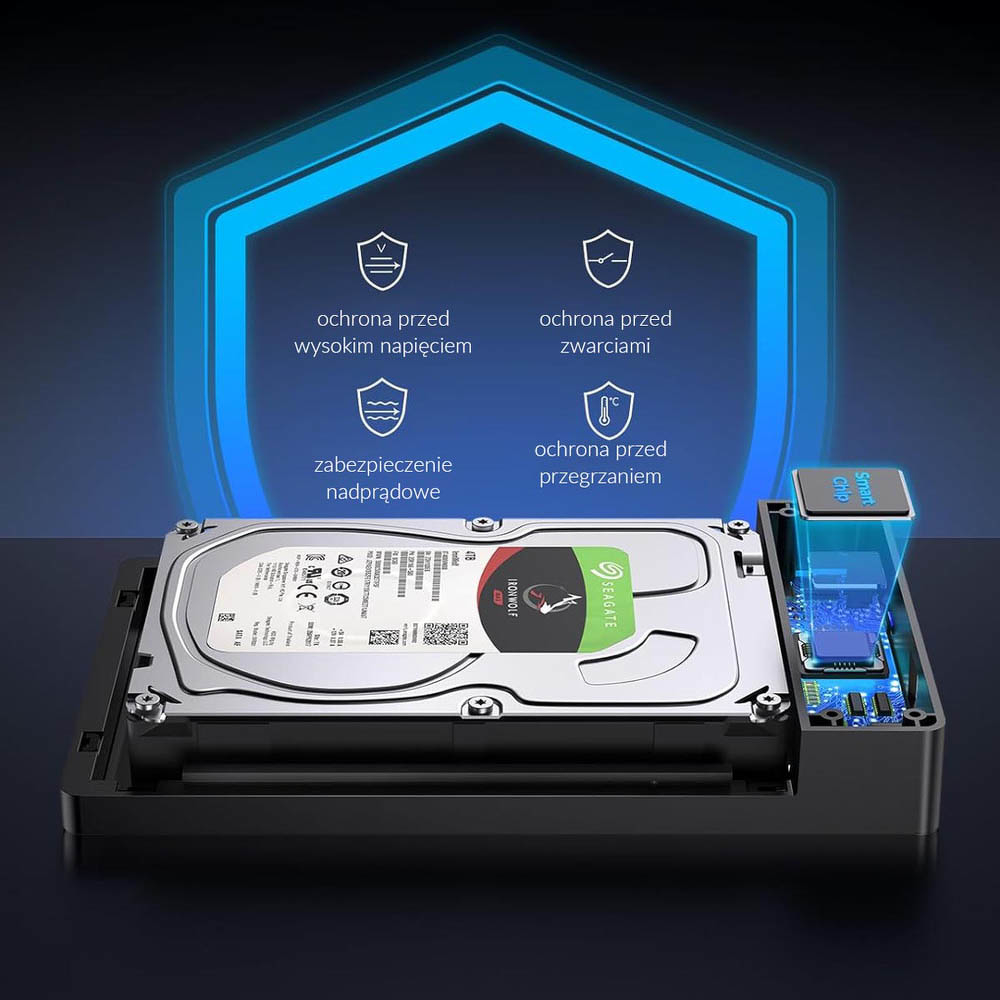 Port USB 3.0 i SATA III obsługują obudowę dysku twardego 3,5 cala do ogromnej pojemności 16 terabajtów. 12 V, 2 A zasilacz UE.