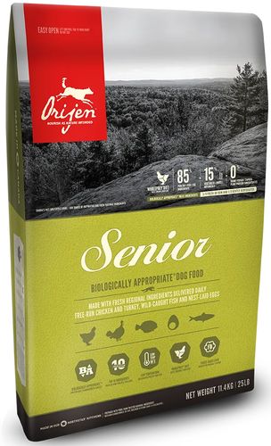 Pełnoporcjowa karma dla starszych psów wszystkich ras z drobiem, rybami i jajami ściółkowymi. Składniki odżywcze świeżego drobiu oraz ryb pozytywnie wpływają na proces żywieniowy starszego psa. Karma Orijen Senior, ma na celu odpowiednią dietę wśród czworonożnych staruszków.