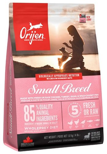 Psy małych ras są wyjątkowe i wymagają jedzenia bogatego w składniki odżywcze oraz dostosowanego do ich specyficznych wymagań energetycznych. ORIJEN Small Breed został stworzony specjalnie dla mniejszych psów. W niewielkich rozmiarów chrupkach, które są łatwiejsze do spożycia przez małe psy, ukrywa się bogactwo białka, składników odżywczych i wspaniałego smaku, którego pragną psy. Składniki mięsne zawarte w formule Small Breed pochodzą od małych gatunków zwierząt, odzwierciedlając tym samym ewolucyjną dietę psów małych ras.