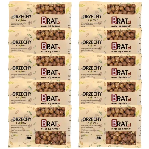 Opakowanie zawiera 10 x 50g orzechów laskowych.