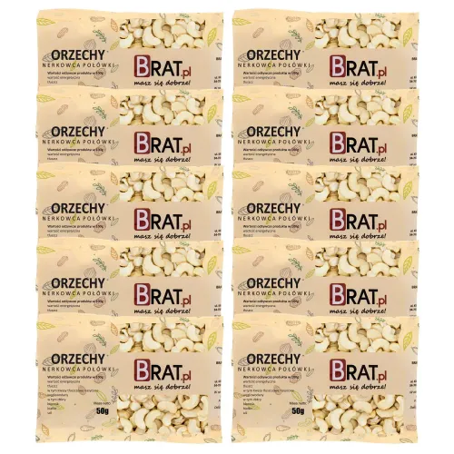 Opakowanie zawiera 10 x 50 g orzechów nerkowca połówek.