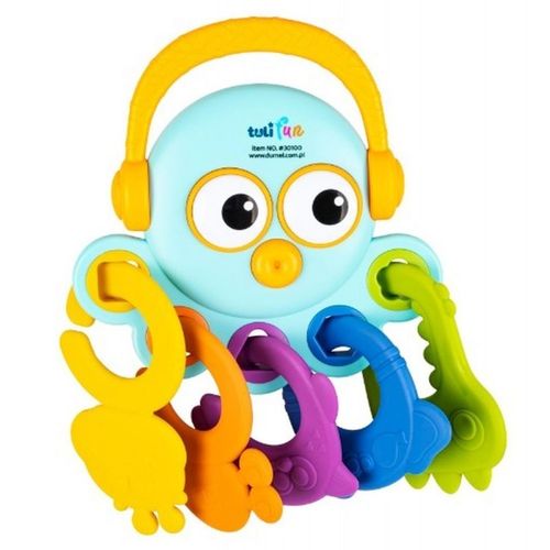 Ośmiornica pomoże ząbkującemu maluchowi, przynosząc ulgę obolałym dziąsełkom. Wszystko za sprawą kolorowych, odczepianych gryzaków w kształcie zwierzątek, których w zestawie znajduje się aż 5! Każdy z nich odznacza się innym kolorem, kształtem oraz zróżnicowanymi wypustkami, które podczas gryzienia masują podrażnione ząbkowaniem dziąsła bobasa. Zabawka posiada praktyczny uchwyt, który powala na jej wygodne przenoszenie z miejsca na miejsce.