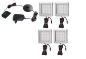 Gotowy kompletny zestaw z czteroma oprawami LED w komplecie dla oświetlenia, podświetlenia mebli,witryn,gablot,regałów, itp.Zestaw wyposażony w układ zasilania z wyłącznikiem na kablu , rozdzielacza DC do którego za pomocą mikro wtyków typu JSTMsą podłączone oprawy LED z długością przewodu 200 cm .Oprawa LED w zestawie - kwadratowa o wymiarach 55mm x 55mm obudowa o grubości zaledwie 4 mm mocowana nawierzchniowo przy użyciu taśmy klejącej lub poprzez przykręcenie do podłoża za pomocą wkrętów . Żródło światła w oprawie diody SMD dające światło pozbawione efektu migotania świecąc jednolicie. Oprawy w zestawie z barwą światła białą zimną . Dzięki zastosowaniu systemu połączeń JSTM zestaw do montażu w meblach można bardzo łatwo rozłączyć i po zamontowaniu połączyć przy pomocy zastosowanego rozdzielacza . Kształt zasilacza może się nieznacznie różnić od prezentowanego na zdjęciu - zależne od dostawy.