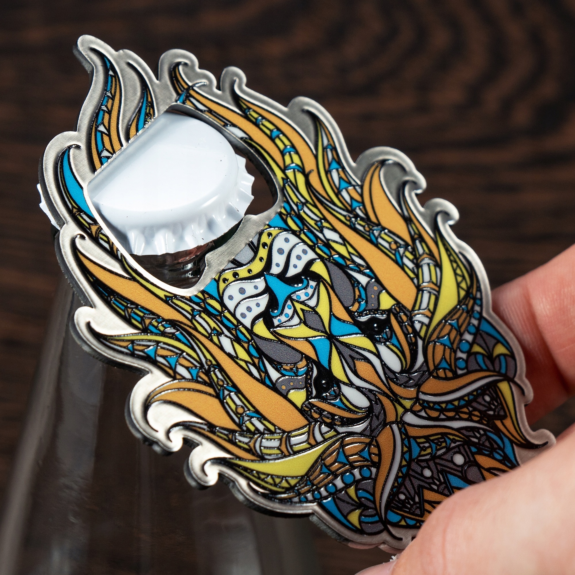 Efektowne wzory zostały wykonane z najwyższą precyzją. Jak widzisz, awers otwieracza posiada mnóstwo kolorowych szczegółów, doskonale odzwierciedlających głowę zwierzęcia. To nasz ukłon w stronę wielbicieli malowniczych akcesoriów.