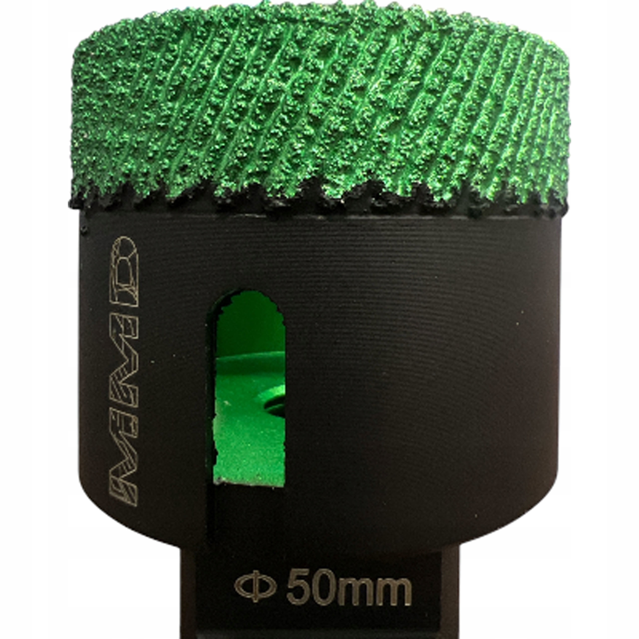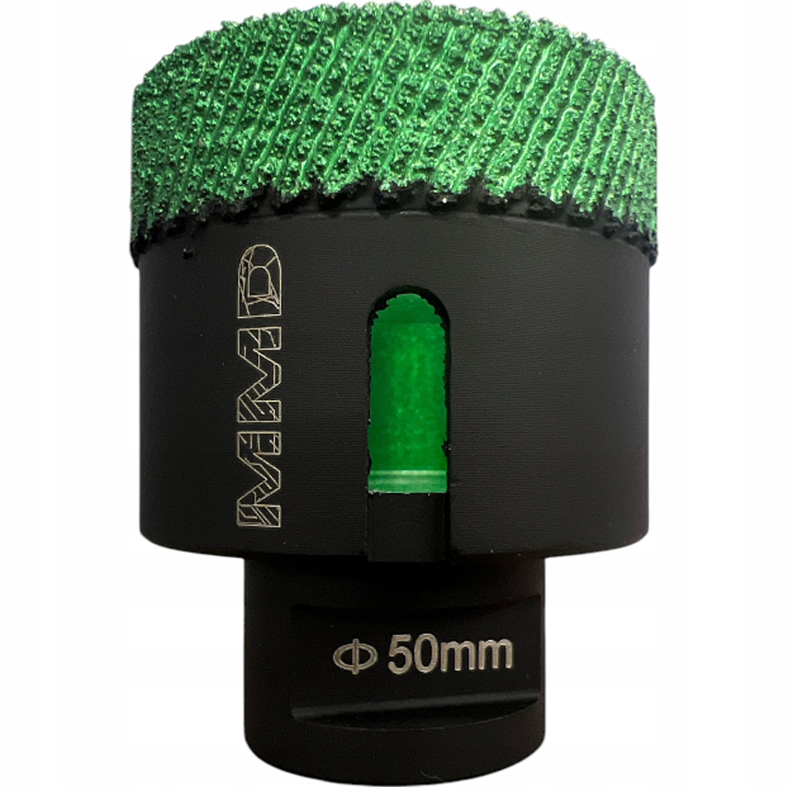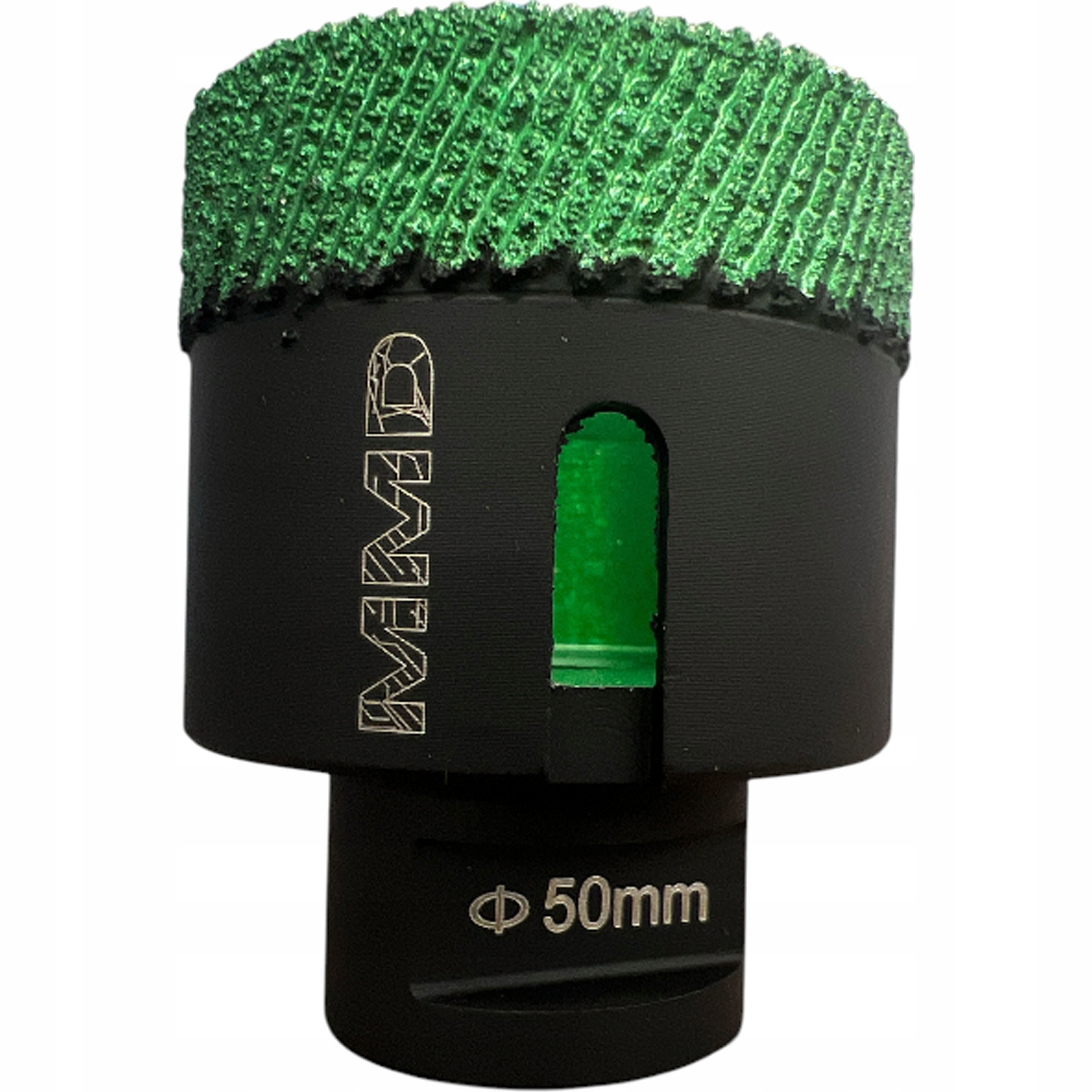 Otwornica diamentowa MMD Ø50 mm z gwintem M14 to profesjonalne narzędzie przeznaczone do wykonywania dużych otworów w najtwardszych materiałach wykończeniowych, takich jak gres, ceramika, marmur, granit, płytki oraz kamień naturalny. Wykonana w technologii vacuum brazed (lutowanie próżniowe), zapewnia wyjątkową odporność na zużycie, precyzyjne cięcie oraz długą żywotność – również bez użycia chłodzenia wodą.