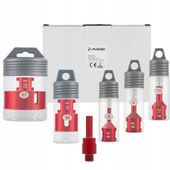 W skład zestawu wchodzi 5 otwornic diamentowych o rozmiarach fi 6, 8, 10, 35, 65 mm, adapter M14 oraz 6 wytrzymałych pudełek do przechowywania (GRATIS). To wszystko, czego potrzebujesz, aby rozpocząć pracę w najlepszych warunkach.