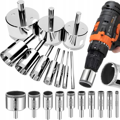 W oferowanym komplecie otrzymujesz 10 wysokiej jakości otwornic diamentowych w najbardziej uniwersalnych rozmiarach: