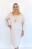 Kieszenie w sukience nie tylko są praktycznym dodatkiem, ale także podkreślają jej casualowy charakter. Materiał imitujący zamsz jest miękki w dotyku, co sprawia, że sukienka jest niezwykle przyjemna w noszeniu. Okrągły dekolt i oversizowy krój sprawiają, że model doskonale tuszuje sylwetkę, dodając jednocześnie elegancji.