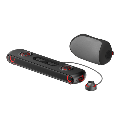 OXS Thunder Pro+ to zestaw audio składający się z soundbara i satelitarnego głośnika na szyję. Zestaw jest kompatybilny z wieloma platformami gamingowymi oraz urządzeniami multimedialnymi.