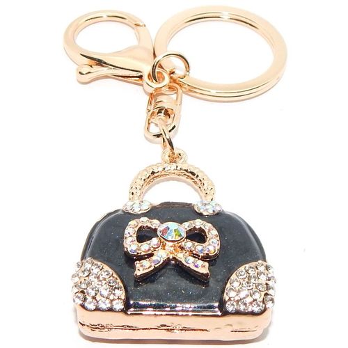 Ozdobny brelok w kształcie czarnej torebki z błyszczącymi się dżetami. Breloczek posiada oczko do przypięcia kluczy i zapięcie dzięki czemu może służyć jako ozdobna przywieszka do plecaka lub torby. Brelok powleczony jest kryształami tylko z jednej - przedniej strony. Idealnie nadaje się również jako upominek dla bliskiej osoby.