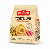 Makaron jajeczny z mąki durum z szynką prosciutto crudo Gotowy w 14 minut Nie zawiera substancji konserwujących Dzięki szczególnej obróbce naturalnej, jaką jest suszenie, tortellini Pagani mogą być przechowywane przez długi okres (12 m-cy). Tortellini Pagani charakteryzują się świetną wydajnością podczas gotowania – prawie trzykrotnie zwiększają masę.