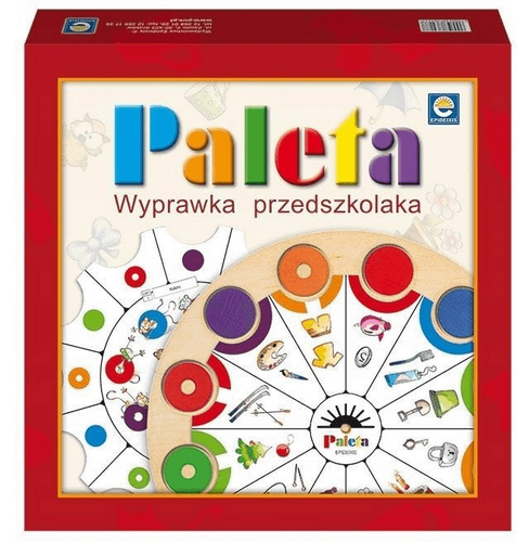 Przedstawiamy praktyczny komplet na dobry początek, a w nim: • „Zestaw Kontrolny”, czyli okrągła podstawa wykonana z drewna z 12 drewnianym klockami w 6 kolorach, 2 tarcze blanko oraz 12 tematycznych tarcz (WP1) ze zbiorem zabaw w formie obrazkowej przystosowanych do możliwości percepcyjnych dzieci w wieku przedszkolnym od 4 lat: • rozpoznawanie kolorów, • dobieranie obrazków według określonych cech: wielkości, kształtu, barwy, przeznaczenia, • wyszukiwanie podobieństw i różnic pomiędzy przedmiotami, • łączenie w pary obrazków logicznie do siebie pasujących; • „Paleta”, zalecana przez pedagogów i psychologów, jest systemem skutecznej edukacji, który rozwija u dziecka spostrzegawczość i koncentrację, uczy myślenia i zapamiętywania oraz kształtuje osobowość i charakter.