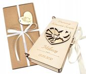 Ten pięknie wykonany zestaw to idealne połączenie praktyczności i elegancji. Drewniane pudełko na pieniądze z brzozowej sklejki 3mm, starannie ozdobione materiałową wstążką i drewnianą zawieszką, stanie się wyjątkową pamiątką na lata.