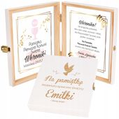 Ten wysokiej jakości, drewniany produkt nie tylko zachwyca swoją elegancką i staranną formą, ale także oferuje możliwość spersonalizowania poprzez profesjonalny grawer laserowy. Dzięki temu staje się wyjątkową pamiątką, która na długie lata będzie przypominać o tym ważnym wydarzeniu.