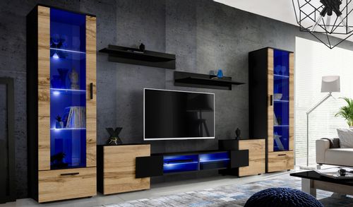 Wprowadź odrobinę luksusu i stylu do swojego salonu z naszą nowoczesną meblościanką Citadel Black/Wotan z niebieskimi LED-ami. To unikalne połączenie elegancji i funkcjonalności, które pozwoli Ci stworzyć przestrzeń idealnie dopasowaną do twoich potrzeb i gustu. Nasza meblościanka dostępna jest w różnych wariantach kolorystycznych, co pozwala na dostosowanie jej do istniejącego wystroju wnętrza. Wybierz spośród wersji z klasycznym dębem Wotan lub nowoczesnym białym wykończeniem.