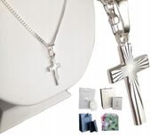 Komplet gwarantuje pełną niezawodność dzięki solidnej konstrukcji, z wagą całego zestawu zaledwie 3 g, co czyni go lekkim i praktycznym. Krzyżyk o wymiarach 1 cm x 1,9 cm z krawatką 2,5 cm doskonale przylega, a zapięcie – choć może różnić się wizualnie – zapewnia pewne i wygodne mocowanie, umożliwiając noszenie w każdej sytuacji bez obaw o utratę blasku czy formy.
