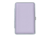 Papierośnica typu slim łączy srebrną, metalową ramę z lawendowym wykończeniem o eleganckiej fakturze. Kompaktowa, płaska forma mieści się wygodnie w kieszeni marynarki, spodni lub w małej torebce. Wnętrze z dwiema elastycznymi taśmami stabilizuje zawartość i chroni ją przed przemieszczaniem. Zaokrąglone rogi i gładkie krawędzie nadają produktowi minimalistyczny, klasyczny charakter. To praktyczny dodatek na co dzień oraz dyskretny element stylu.