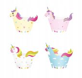 Papilotki do muffinek Jednorożce to idealny dodatek do Twojej imprezy urodzinowej. Zaprojektowane w pastelowych odcieniach niebieskiego, różowego, żółtego oraz fioletowego, te urocze jednorożce na pewno przyciągną uwagę gości i sprawią, że każda babeczka będzie wyglądać jeszcze bardziej magicznie.