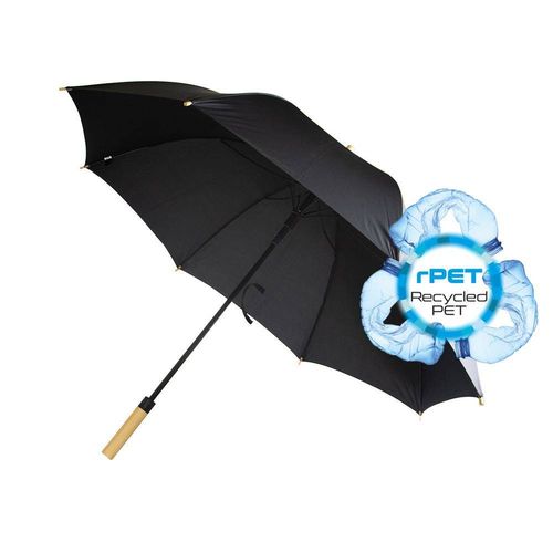 Parasol automatyczny B'RIGHT, wykonany z RPET, bambusowa rączka, 8 paneli, posiada certyfikat GRS (Global Recycled Standard) na materiał RPET pongee