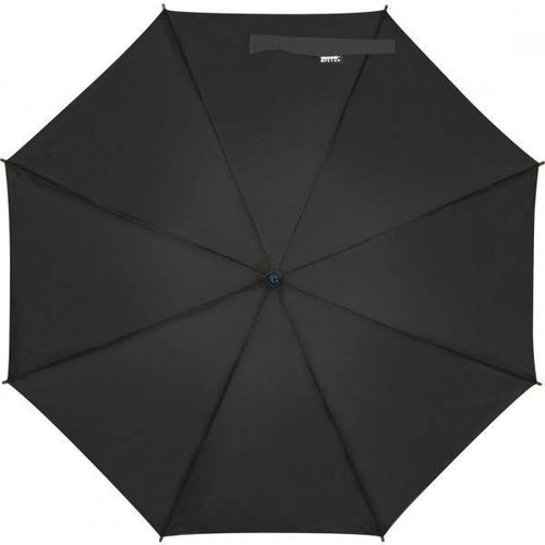 Automatyczny, wiatroodporny parasol z wykonany z włókna szklanego z zakrzywioną drewnianą rączką.
