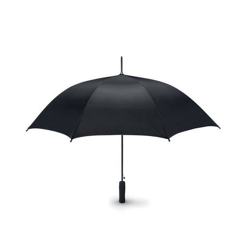 Parasol automatyczny 23 cale wykonany z pongee 190T, z czernionym metalowym trzonem i ożebrowaniem, czarne plastikowe zakończenia.