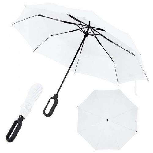Niewielka parasolka z gumowaną rączką-karabińczykiem.
