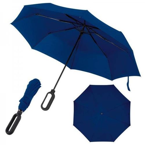 Niewielka parasolka z gumowaną rączką-karabińczykiem.