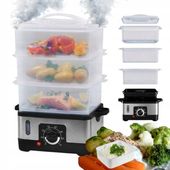 Ten parowar elektryczny o mocy 950W i pojemności 9L zachwyca precyzyjnym wykonaniem i niezawodną konstrukcją, która pozwala na gotowanie na parze bez użycia tłuszczu. Z trzema pojemnymi koszami po 3L każdy, umożliwia jednocześnie przygotowanie warzyw, ryb i mięs, zachowując pełnię smaku i naturalne wartości odżywcze w każdym daniu.