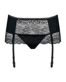 Obsessive Miamor pas do pończoch – ozdobna elegancja w klasycznym wydaniu. Pas do pończoch Miamor wykonany jest w całości z miękkiej, elastycznej tkaniny w kolorze kruczej czerni kusząco opinającej ciało. Brzegi Miamor oraz wstawka z przodu pasa uszyte z dekoracyjnej koronki o lekko orientalnych akcentach przyciągają spojrzenie dodając lekkości bieliźnie. Paski posiadają regulację długości, co umożliwia idealne dopasowanie ich długości. W komplecie znajdziemy także gładkie stringi wykonane z tego samego materiału. Pas do pończoch Miamor fantastycznie dopełnia bieliznę z rodziny Miamor. Współgra z gorsetem i kompletem Miamor.