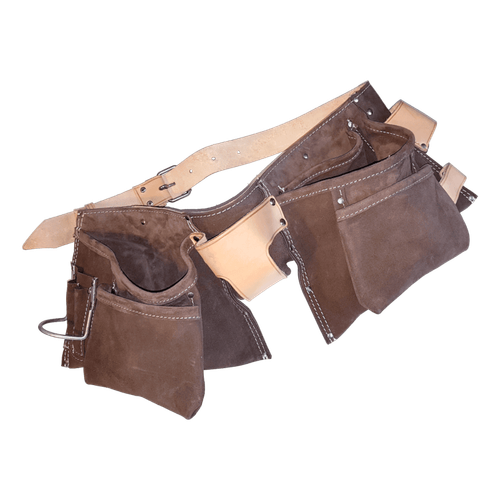 Dodatkowo skórzany uchwyt na młotek, nożyce i skórzana kieszeń środkowa na miarę zwijaną lub duże narzędzie z dwiema rękojeściami.