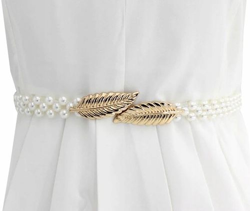 Pasek damski wąski perłowy elastyczny