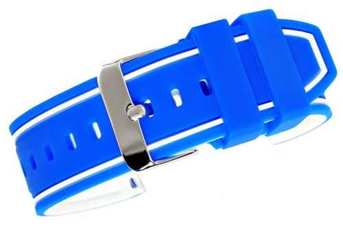 Prezentowany pasek wyróżnia się niebiesko-białym kolorem, który przyciąga wzrok i idealnie komponuje się zarówno z codziennym, jak i sportowym stylem. Silikonowy materiał nadaje mu nowoczesnego charakteru, a sprzączka ze stali szlachetnej zapewnia elegancki akcent oraz trwałość.