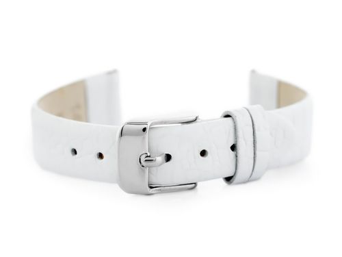 Pasek ze skóry naturalnej w kolorze białym. Klamerka metalowa w kolorze srebrnym.