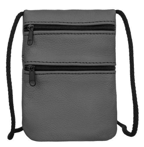 Paszportówka jest zawieszona na trwałym sznurku o długości ⏩ 72 cm, który zapewnia komfort noszenia. Niewielki rozmiar pozwala na noszenie jej na szyi lub ramieniu, a szary kolor i wyraźna faktura materiału dodaje elegancji i stylu.