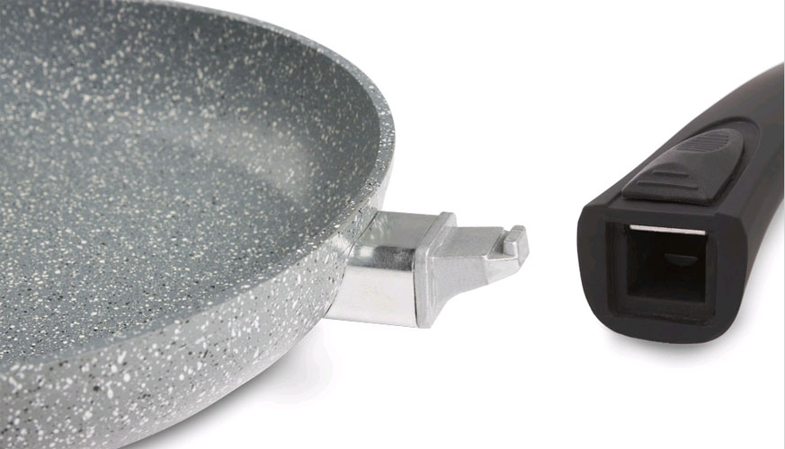 Ten model patelni Stonite został wyposażony w zdejmowaną rączkę soft-touch, którą w dowolnej chwili możesz odczepić od patelni, co nie tylko ułatwia jej przechowywanie, ale też daje możliwość używania jej w piekarniku, otwierając przed Tobą nowe możliwości kulinarne.