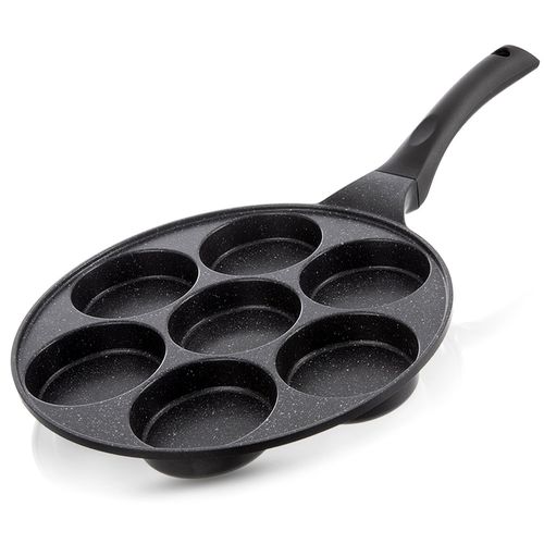 Nieprzywierająca patelnia do jajek o wyjątkowym, ponadczasowym wyglądzie. Patelnia utrzymana w modnym stylu, dzięki czemu efektownie prezentuje się w kuchni. Patelnia posiada siedem dedykowanych otworów, które pozwalają uzyskać idealny, okrągły kształt potraw. Z jej pomocą usmażymy pyszne jajka sadzone, ulubione placuszki śniadaniowe czy mini naleśniki. Niezastąpiona w każdej kuchni, ułatwia gotowanie i nadaje potrawom perfekcyjny wygląd. Wykonana z najwyższej jakości materiałów, odpowiednio użytkowana posłuży długie lata.
