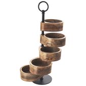 Patera z 5 ruchomymi miseczkami umożliwia efektowne i wygodne serwowanie różnych przekąsek. Wykonana z wytrzymałych materiałów, jest łatwa w czyszczeniu i wygodna w użytkowaniu. Nadaje się do serwowania orzechów, chipsów, ciasteczek, cukierków, suszonych owoców i innych słodkich lub słonych przekąsek. Sprawdzi się do użytku domowego oraz profesjonalnego. Dzięki antypoślizgowej podstawie patera nie przesuwa się w trakcie użytkowania. Drewno mangowca jest materiałem ekologicznym i bezpiecznym dla zdrowia. Patera nie nadaje się do mycia w zmywarce do naczyń. W celu konserwacji drewna zaleca się od czasu do czasu natrzeć miseczki olejem spożywczym.