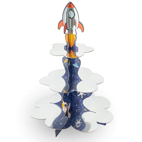 Fantastyczna a zarazem praktyczna dekoracja stołu imprezowego - patera do babeczek z kolekcji Kosmos. Czy może być lepsze miejsce do startu w przestrzeń kosmiczną?