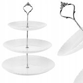 Wielopoziomowa konstrukcja zapewnia przestrzeń do prezentacji różnorodnych przysmaków, od małych słodkości po większe kawałki ciasta. Ergonomiczny uchwyt ułatwia przenoszenie i serwowanie, a stabilna podstawa gwarantuje bezpieczeństwo.