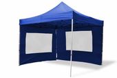Pawilon ogrodowy rozkładany Profi 3 x 3 m - niebieski, 2 ściany boczne z oknami. Pawilon rozkładany jest automatycznie co zapewni wygodę. Sprawdzi się on nie tylko na większe uroczystości na dworze, ale również jako miejsce gdzie możesz odpoczywać na co dzień! Zachwyca prostotą i elegancją, jest atrakcją każdego ogrodu. Teleskopowe nogi wykończone stopkami które można przytwierdzić do podłoża, ścianki mocowane na rzepy i na haczyki. Nogi pozwoli regulację wysokości.