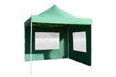 Pawilon ogrodowy rozkładany 3 x 3 m - zielony, 2 ściany - w tym ścianki boczne z oknami. Pawilon rozkładany jest automatycznie co zapewni wygodę. Sprawdzi się on nie tylko na większe uroczystości na dworze, ale również jako miejsce gdzie możesz odpoczywać na co dzień! Zachwyca prostotą i elegancją, jest atrakcją każdego ogrodu. Teleskopowe nogi wykończone stopkami które można przytwierdzić do podłoża, ścianki mocowane na rzepy i na haczyki. Nogi pozwoli regulację wysokości.
